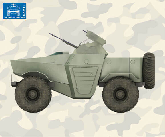■ На данном этапе, оснащение машины предполагается низкопрофильной облегченной башенной установкой (без размещения стрелка), в которой броней защищены только важные части оружия, прицельные комплексы и приспособления, при этом перезарядка и управление вооружением осуществляется непосредственно из 2-х местной броне-капсулы салона машины.■ В компактной башенной установке размещаются крупнокалиберное штурмовое оружие кал. 12,7 мм, типа АШ-12 или другое с бронебойными патронами, а также ручной пулемет кал. 5,45 (7,62) мм в модификации: со складным или отстегивающимся прикладом или пистолет-пулемет кал. 9,0 мм с возможностью использования разнообразного боепитания: дисковой магазин или патронный короб.■ В целях транспортировки компактных бронемашин внутри вертолета типа Ми-8, для соблюдения необходимого габарита по высоте (до 1,72 м), башенная установка выполняется складывающейся и дополнительно оснащается |
